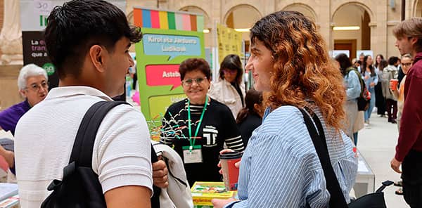 La Universidad de Deusto celebró el 21 de septiembre la Feria del Voluntariado con el objetivo de contribuir al fomento de la participación social del alumnado. El claustro del Auditorio acogió a más de 60 entidades y organizaciones sociales las cuales dieron a conocer los diferentes programas de voluntariado existentes en el territorio. Además de los stands de estas asociaciones, la feria llevó a cabo actividades paralelas como conferencias, talleres…