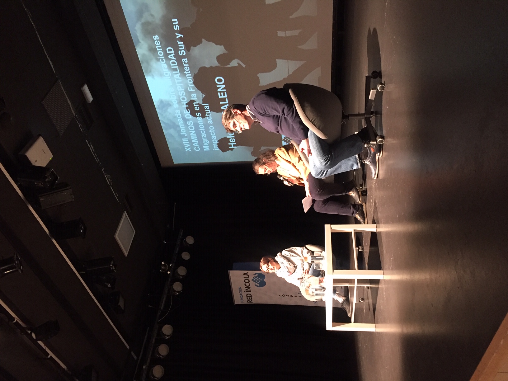 El testimonio vital y sin paños calientes de Helena Maleno se centró en el motor que le mueve a ella, a la ONG que fundó en 2002 y a las instituciones que colaboran con ella: la memoria de las víctimas, la dignidad después de la muerte: “Todo lo que hacemos es para poder decir a sus familias que han llegado y defender el derecho a la verdad”. En esta búsqueda tienen que hacer frente a obstáculos como el silencio, la ignominia y las políticas del dejar y hacer morir a las personas migrantes. “Impera la necropolítica basada en vidas desechables que dan dinero y un racismo estructural, institucional y social que otorga impunidad y genera discursos de odio”. Su análisis estuvo jalonado de experiencias personales, de nombres de hombres y mujeres migrantes y sus familias, que buscan desesperados a sus seres queridos.