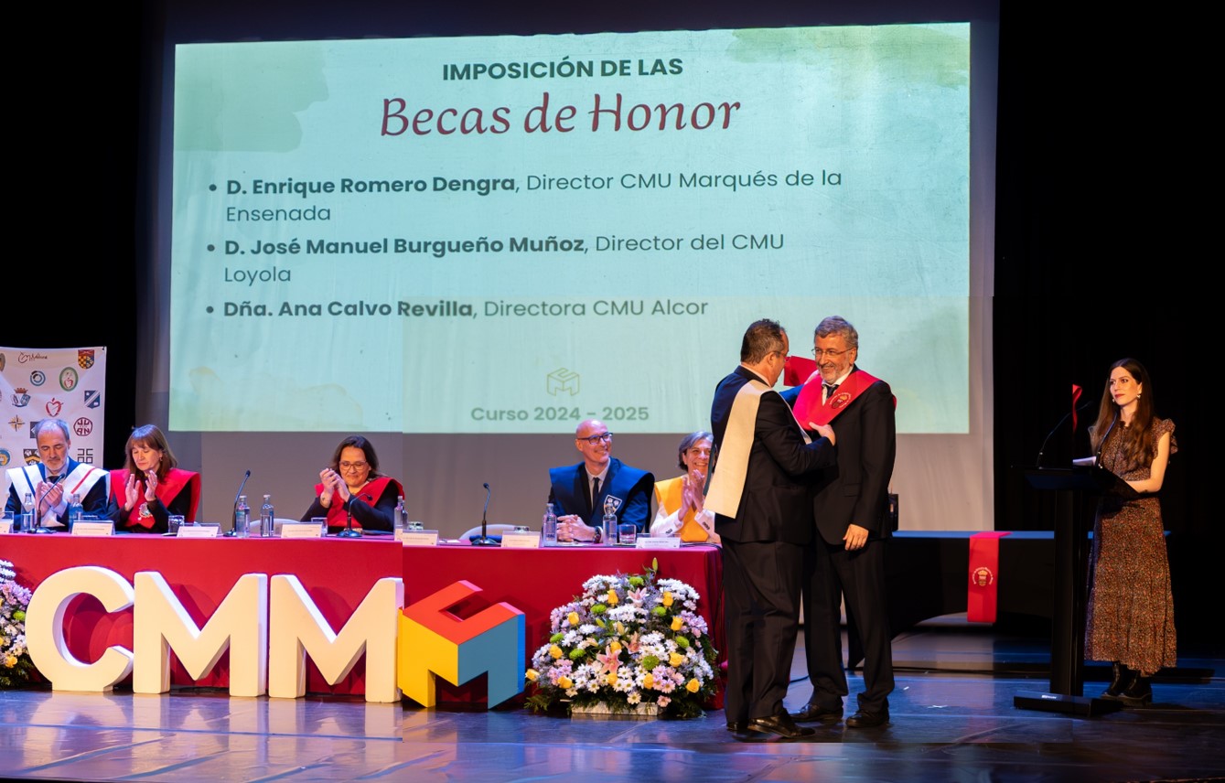 Junto al Colegio Mayor Loyola, han sido también galardonados los colegios mayores Marqués de la Ensenada, en la figura de su director, Enrique Romero; y Alcor, con la imposición de la beca a su directora, Ana Calvo.