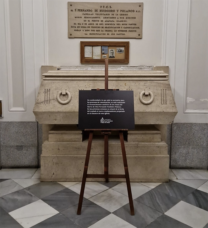 Este 9 de abril se ha comenzado un proceso que, en unos meses, llevará a la nueva ubicación de los restos del Siervo de Dios Fernando Huidobro Polanco, en el claustro de la parroquia San Francisco de Borja, en Madrid.