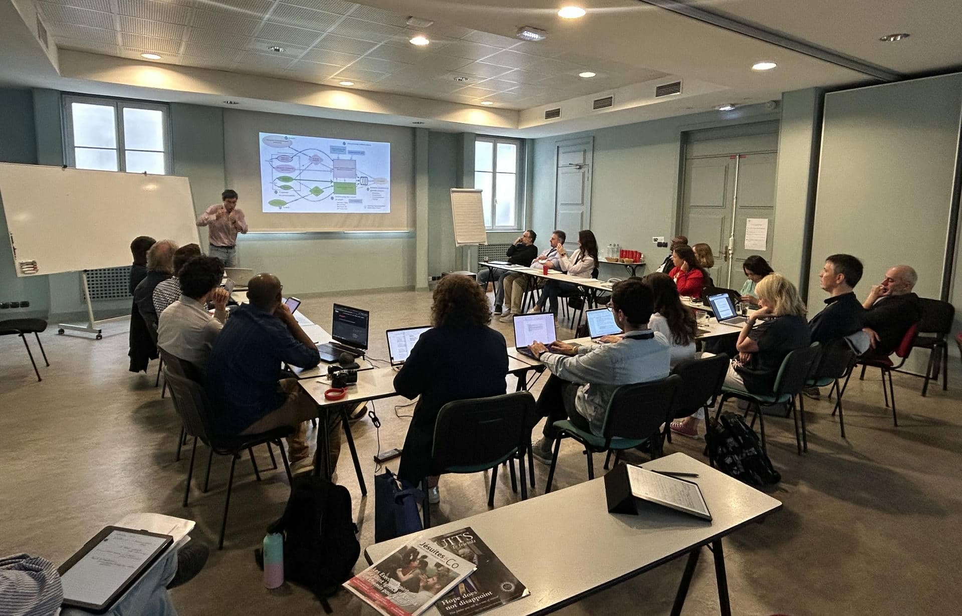Esta semana se ha celebrado en París el JesWebCom 2025, organizado por la Conferencia de Provinciales Europeos (JCEP) y en el que un año más ha participado la Provincia de España. Es el encuentro anual de la red de comunicadores de la distintas provincias europeas de la Compañía para poner en común desafíos y estrategias. En esta ocasión, han participado una veintena de personas procedentes de las oficinas de comunicación de Francia, Polonia, Eslovenia, Alemania, Irlanda, Gran Bretaña, Países Bajos, Portugal, Hungría, España o la Curia General de Roma. Las sesiones, entre el 19 y el 22 de mayo, han estado dedicadas a los diferentes retos que se plantean a todas las provincias, como la utilización responsable de la Inteligencia Artificial, transmitir la misión a un público más joven o la Cultura Vocacional.