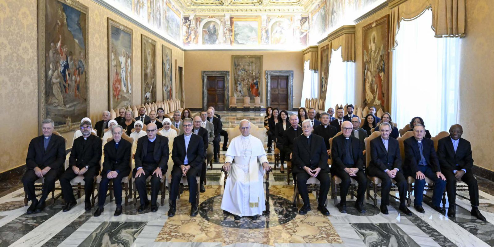 El jueves 25 de septiembre de 2025, el Papa León XIV recibió en audiencia, en la biblioteca privada del Palacio Apostólico, al P. Arturo Sosa SJ, Prepósito General de la Compañía de Jesús, y al P. Nuno da Silva Gonçalves SJ, director de 'La Civiltà Cattolica', revista de la Compañía de Jesús. Tras este coloquio, en el Aula del Consistorio, el Pontífice se encontró con el Colegio de escritores junto a los demás padres de la comunidad de jesuitas, la comunidad de religiosas y los colaboradores de la revista y de la comunidad. Con ocasión de este encuentro, el Colegio de escritores quiso ofrecer al Santo Padre una recopilación de escritos sobre san Agustín aparecidos en la revista a lo largo de los últimos setenta años.