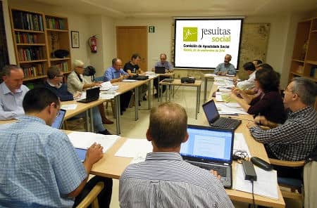 El 26 de septiembre se celebró en Madrid la primera reunión de la Comisión de Apostolado Social, un consejo asesor y órgano de apoyo al delegado del sector integrado por personas provenientes de distintos ámbitos sectoriales y provinciales. La comisión está formada por: José Ignacio García (Delegado Social de la Conferencia de Provinciales Europeos - Bruselas), Mark Cachia (JRS – Malta), Camillo Ripamonti (Centro Astalli JRS – Italia), André Costa (JRS – Portugal), Mercedes Fernández (Instituto Migraciones – Comillas), Llorenç Puig (Delegado PAT Cataluña), Cristina Manzanedo (Comisión Incidencia Sector Social), José Luis Pinilla (Director del Secretariado de la Comisión Episcopal de Migraciones), Pablo Veiga (Párroco del Milagro de San José), David Guindulain (Delegado de la PAL Besòs – Escola del Clot) y Gonzalo Villagrán (Facultad teología de Granada). Asimismo, nos acompañó Filipe Martins (Delegado del sector social de Portugal) y dos de los coordinadores de las tres áreas prioritarias del sector: Miguel González (Migraciones) y Daniel Villanueva (Cooperación Internacional).