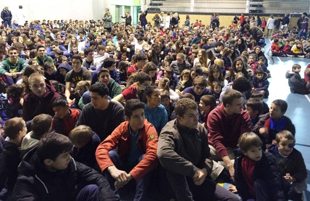Pero faltaba algo… el viernes, a las 9.45 de la mañana, el polideportivo del Colegio empezó a recibir a cientos de niños, adolescentes, jóvenes y adultos para orar “todos juntos”. El reto no era fácil: reunir en una sola celebración a casi 2000 personas, desde los niños de tres años que inician su formación en el colegio hasta los jóvenes de 18 años que pronto lo dejarán para emprender nuevos desafíos en la universidad. No era fácil pero resultó y, al final, todos los que participamos coincidíamos en un par de expresiones: “Qué gozada” y “Gracias”.