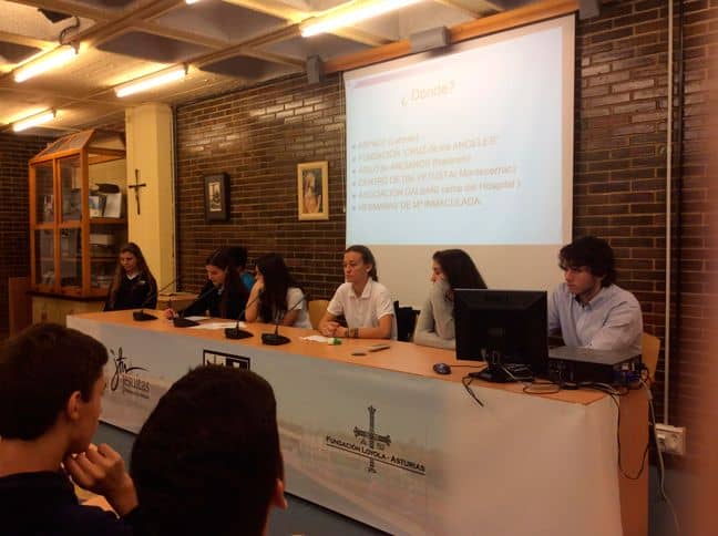 El equipo de Pastoral de 3º y 4º de la ESO del Colegio San Ignacio de Oviedo presento a los alumnos de 4º la formación del servicio social para el próximo curso. La explicación de los distintos proyectos: refuerzo escolar, bebés, acompañamiento de ancianos y atención a las personas con parálisis cerebral fue hecha por alumnos de 1º de bachillerato que contaron su experiencia personal en los distintos centros donde colaboramos.