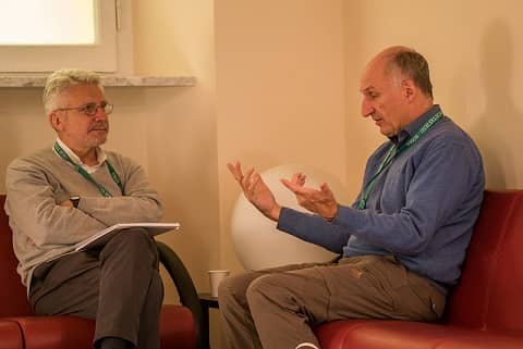 El ritmo propio del charlar, anotar, buscar una cita, orar, dejar reposar y escuchar la voz interior va dando paso a diferentes estados de ánimo: desde la moderación al entusiasmo o viceversa, de la falta de claridad a la luz que se abre y contrasta, buscando siempre el fiel de la balanza. Consuelos y desconsuelos, razones y deseos, sentimientos e imágenes. Todo ello va generando un clima interno que se ayuda de la atmósfera exterior, hecha de enclaustramiento y puertas adentro, sin más contacto hacia fuera que cuando cada cuál se retira a última hora de la tarde para volver a la residencia donde vive.