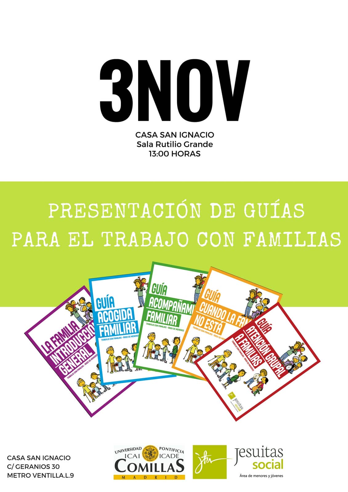 El acto de presentación de las Guías de Familia tendrá lugar el día 3 de noviembre en la sala Rutilio Grande de la Casa San Ignacio (calle de los Geranio, 30, Madrid) a las 13:00.