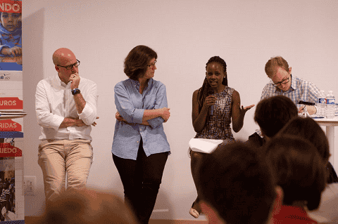 Mireille Twayigira, refugiada ruandesa que ha participado en el lanzamiento de la iniciativa, huyó de su país con 2 años. Su historia podría ser una historia de desesperanza, una historia trágica por la huída, trágica por la pérdida de sus padres, hermanos y abuelos en la huída. Pero ella prefiere contar la historia desde un punto de vista esperanzador. Ella dice “mi vida no es una historia trágica”. Si ha pasado por todo esto, con tantas posibilidades de haber fallecido y no lo ha hecho, está claro que algún propósito tiene la vida para ella, así lo cree Mireille. Ella es una luz de esperanza en medio de la desesperanza de un campo de refugiados.