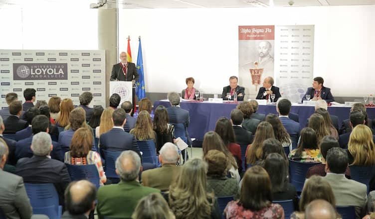 Asimismo, junto a Daniel Villanueva, han intervenido el rector de la Universidad Loyola Andalucía, Gabriel Pérez Alcalá; el secretario general, Pedro Pablo Pérez; la directora del Servicio de Evangelización y Dialogo, María Rita Martín; el director del Servicio de Relaciones Internacionales, Francisco de Borja Martín, y el presidente de ‘Alpha Sigma Nu’ España, José Aranda. La oración de San Ignacio ha corrido a cargo de Jose María Valverde S.J.