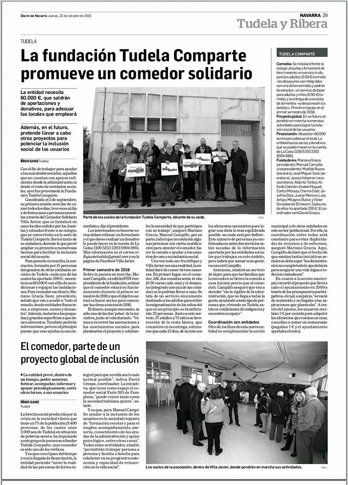 La fundación Tudela Comparte promueve un comedor solidario. Diario de Navarra