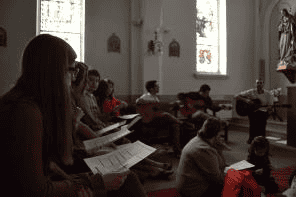 La Semana Santa la hemos celebrado atendiendo a tres centros: la Parroquia, las Misioneras de Cristo Jesús y la Basílica, cuyos oficios fueron dirigidos por el párroco, Valverde, el Superior Txantxiku y Falces, que dirigió también un Vía Crucis que tuvimos alrededor de la Plaza. La Vigilia Pascual la celebramos todos con el pueblo en la Parroquia, a la que se unieron ejercitantes y otros que vinieron al retiro. Esa noche llegó también un grupo de la "Pascua Itinerante" que vinieron andando por el norte con Martín Iriberri y Manolo De la Merced y otro grupo de Zaragoza con el P. Jaime Tatay que celebraron los Actos pascuales en la capilla grande de jóvenes (ver foto). El Superior fue a inaugurar la nueva Capilla largamente esperada del colegio de Pamplona.