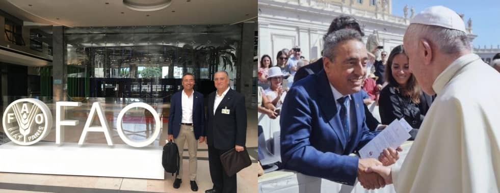 La víspera de la audiencia pudimos entrevistarnos con el sacerdote español que es el observador permanente de la Santa Sede ante la FAO. Él mismo nos facilitó reunirnos en la sede central de la FAO con varios expertos y después expusimos el estado actual del desarrollo del proyecto a la subdirectora adjunta y al representante de la Embajada española: ambos se mostraron muy interesados dada la importancia humanitaria de la MTBVAC.
