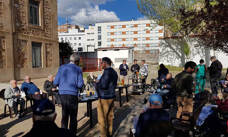 El lunes 25 de abril había varias cosas que celebrar. Por un lado, el tiempo de Pascua. Por otro, el haber superado una ola de contagios por Covid que ha mantenido aislados a un buen número de jesuitas en las últimas semanas. El llamado “Lunes de Aguas” fue una buena ocasión y la comunidad se juntó en la huerta de la casa, en un día soleado, para conversar y merendar hornazo, como manda la tradición charra.