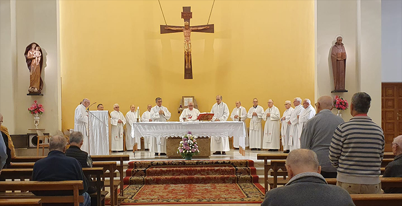 Este viernes 22 de Noviembre hemos celebrado en la comunidad de Alcalá de Henares los 50 años de Compañía de Alfredo Verdoy. Además de la comunidad también participaron un grupo de amigos jesuitas venidos de Madrid. A las 12,30 tuvimos una sencilla y preparada celebración de la Eucaristía presidida por Alfredo, con una emotiva homilía recordando diversos momentos y personas de su peregrinar a lo largo de estos años desde que en 1974 entró en el noviciado. En la oración de difuntos recordó a sus padres y a varios compañeros jesuitas con los que tuvo una cordial amistad. Para terminar se cantó la “salve regina” con voces armoniosas y fuertes.